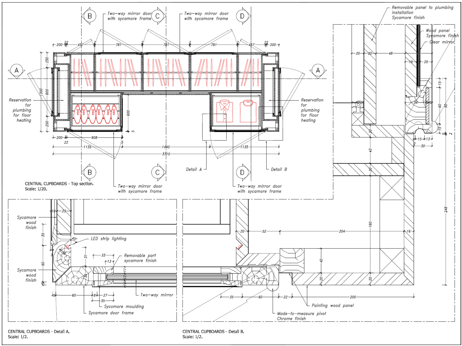 Dans la mise en page des plans, nous veillons également à organiser les cotes de manière claire, en nous basant sur les règles normatives générales du dessin technique et les pratiques professionnelles propres à l’architecture intérieure et à l’agencement.